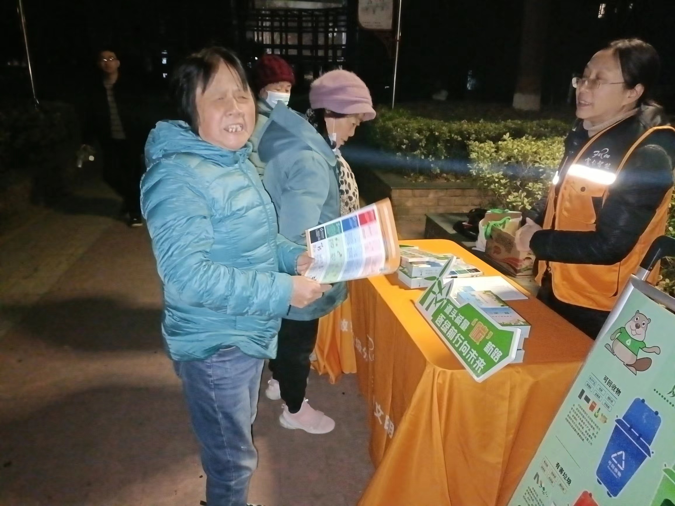 1月10日晚,富仁智能宣傳員在西大街社區(qū)所轄小區(qū)江南華都開展運(yùn)營前宣傳活動。盡管活動當(dāng)天氣溫較低,但參與活動的工作人員和現(xiàn)場居民群眾依然熱情高漲。宣傳員向小區(qū)居民耐心地講解垃圾分類知識,說明三定一督垃圾分類工作的好處,并積極引導(dǎo)居民前往小區(qū)分類屋進(jìn)行垃圾投遞。