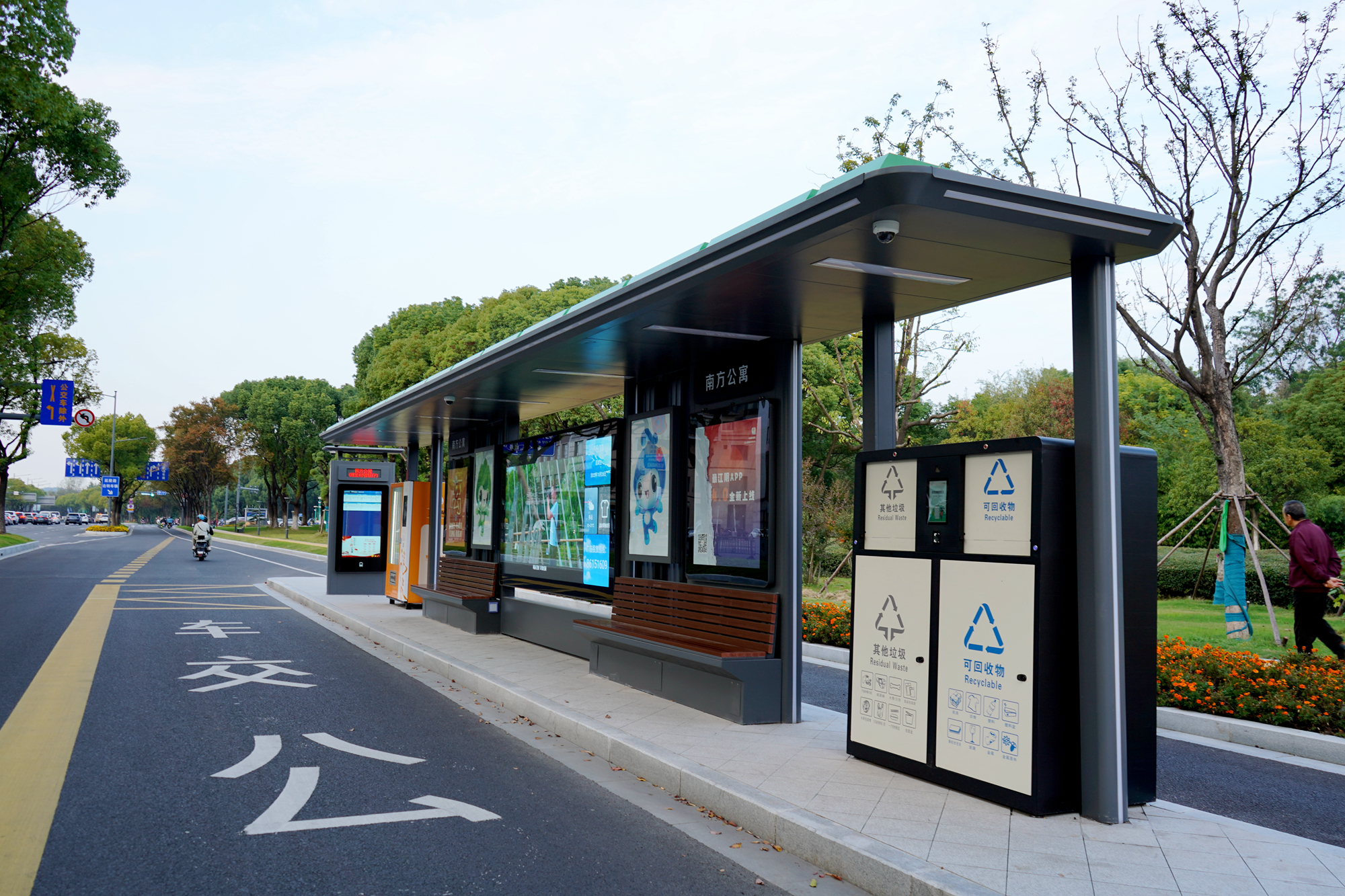 2022年10月,改造一新的大橋路成為江陰新晉網(wǎng)紅,該路段的公交站臺更是這里的一道亮麗風(fēng)景線。這些車站換上了“新顏”,搖身一變成為了智慧公交站臺。